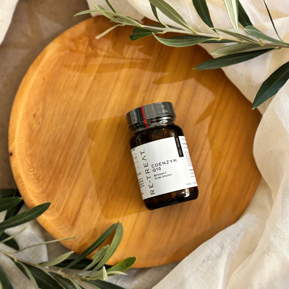 Coenzym Q10 ist eine vitaminähnliche Substanz, die sich in allen Zellen befindet, am meisten in den Herzmuskelzellen. Q10 spielt eine wichtige Rolle im Rahmen der zellulären Energiegewinnung und ist ein starkes fettlösliches Antioxidans. Mit dem Alter sinkt die körpereigene Coenzym Q10-Synthese, auch bestimmte Medikamente (Statine) hemmen die Q10-Bildung. Vitamin C trägt zum Schutz der Zellen vor oxidativem Stress bei, Piperin aus schwarzem Pfeffer fördert die Q10-Aufnahme, und der kräftigende Vitalpilz Cordyceps sinensis unterstützt den Organismus zusätzlich.