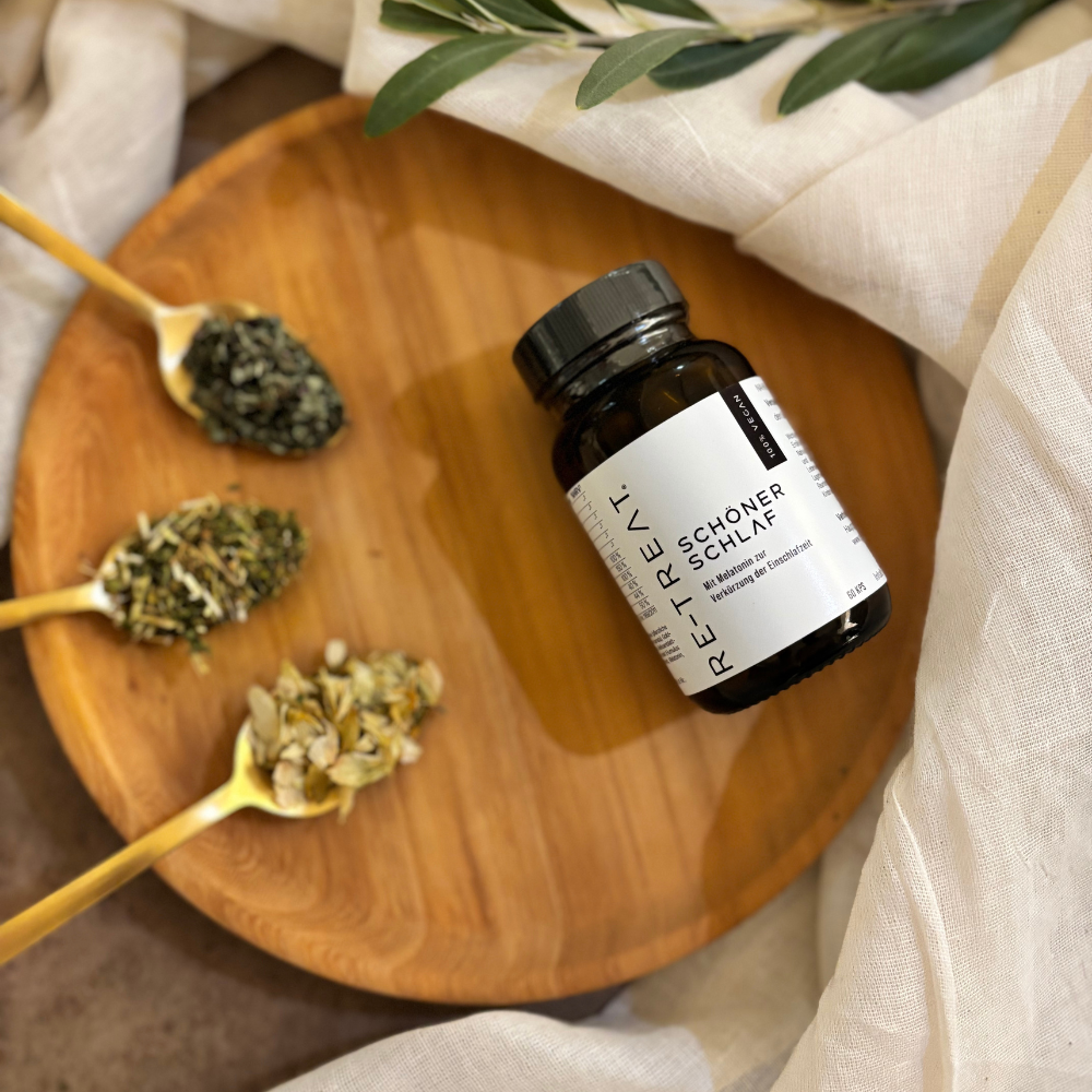 Bestimmte Pflanzen und Mikronährstoffe können helfen, die Schlafqualität auf sanfte, natürliche Weise zu verbessern. Inhaltsstoffe aus Melisse, Passionsblume und Hopfen wirken beruhigend, Goldmohn unterstützt die mentale Balance und fördert einen entspannten Schlaf. Magnesium trägt zur normalen Funktion des Nervensystems und der Muskulatur bei und erleichtert die Entspannung. Das sogenannte Schlafhormon Melatonin, welches wesentlich an der Steuerung des Tag-Nacht-Rhythmus beteiligt ist, trägt zur Verkürzung der Einschlafzeit bei. L-Tryptophan dient als Vorstufe für die körpereigene Melatonin-Bildung.